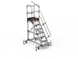 Лестница с платформой Kayakuro односторонняя с колесами на амортизаторах 7 ступеней