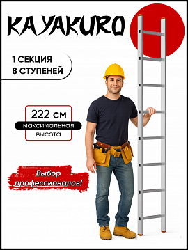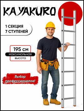 Односекционная индустриальная лестница Kayakuro позволяет выполнять различные ремонтные работы на высоте. Изготовлена из алюминия и обладает достаточной прочностью, чтобы выдержать нагрузку до 150 кг