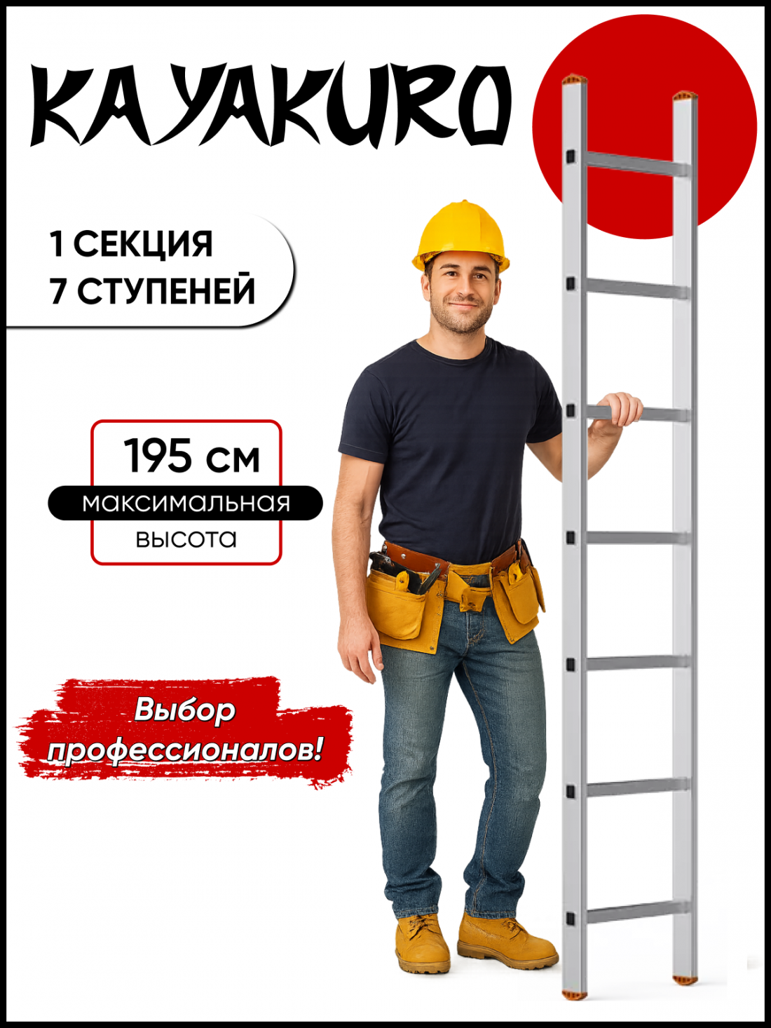 Используйте односекционную индустриальную алюминиевую лестницу KAYAKURO 7 ступеней дома или на производстве — этот инструмент станет надежным помощником при выполнении широкого спектра бытовых и профессиональных задач!
