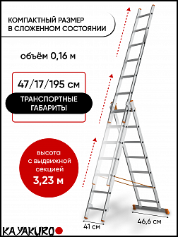Высота стремянки с выдвижной секцией, м: 3,23